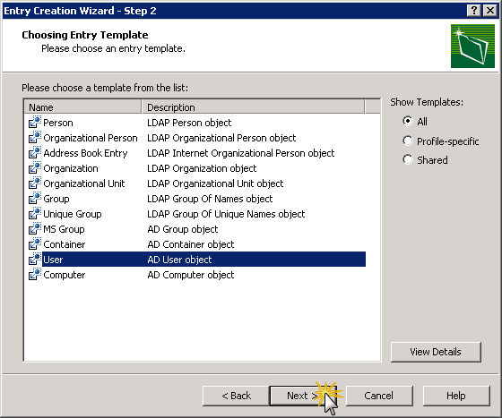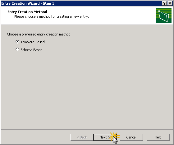 - In the Entry Creation Wizard that appears, select Template-Based and then click Next.