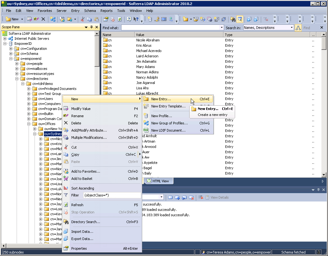 In this topic, we demonstrate how to create new directory objects by creating a new AD user account from the EmpowerID Virtual Directory.