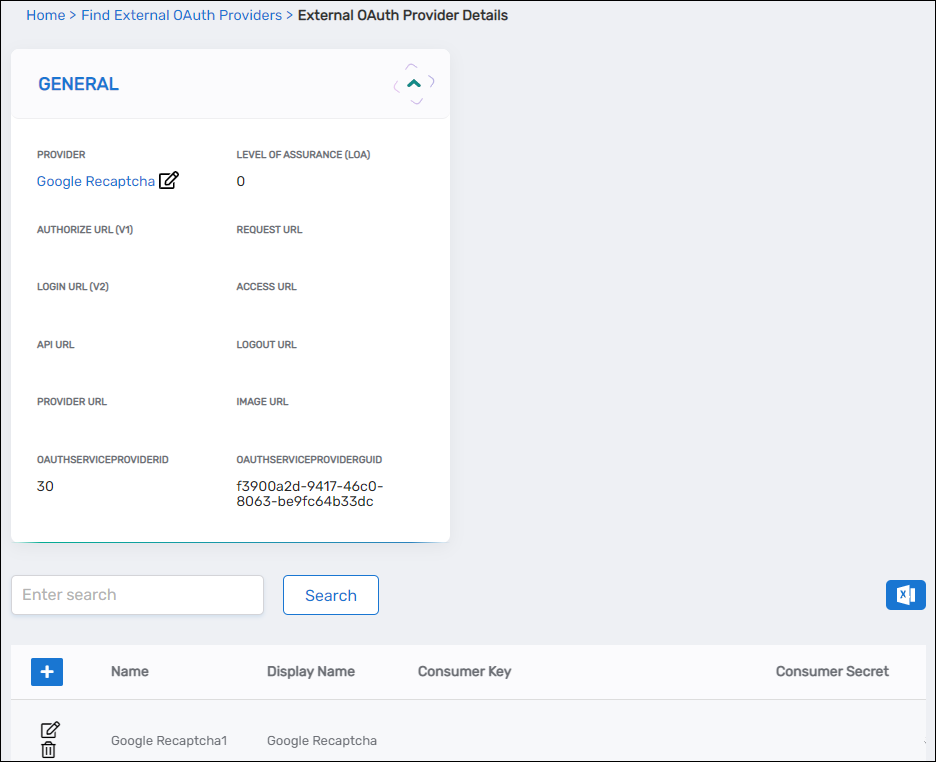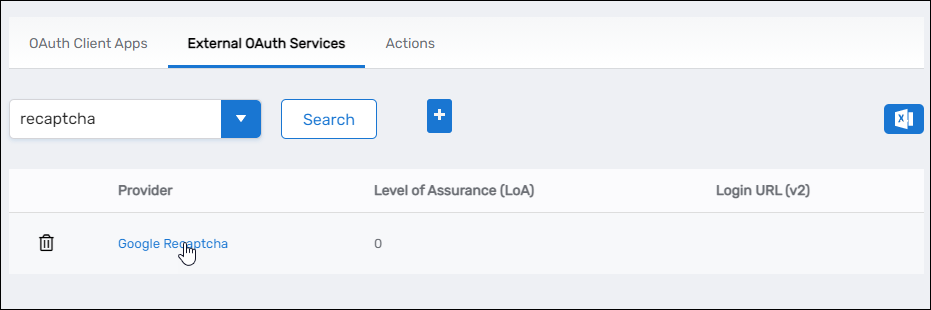 - On the External OAuth Provider tab, search for Google reCAPTCHA and click the Provider link.
