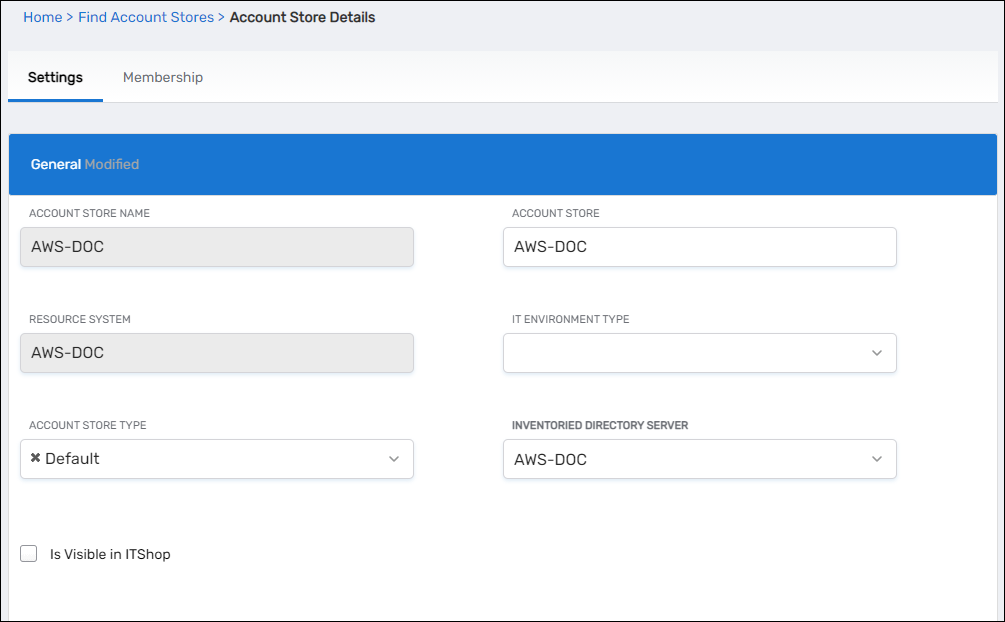 Account Store SettingsSetting Description General Settings IT Environment Type Allows you to specify the type of environment in which you are creating the account store. Account Store Type Allows you to specify the type for the account store. Inventoried Directory Server Allows you to select a connected server as the directory server for the account store. Is Visible in ITShop Specifies whether the account store can be used to filter IT Shop resources to show resources, such as groups, contained in the account store. Authentication and Password Settings Password Manager Policy for Accounts without Person Specifies the Password Manager Policy to be used for user accounts not joined to an EmpowerID Person. Provisioning Settings Allow Person Provisioning (Joiner Source) Specifies whether EmpowerID Persons can be provisioned from user accounts in the account store. Max Accounts Per Person Specifies the maximum number of user accounts that a person can have in the account store. Send All Changes to Outbox Specifies whether all changes should be sent to the Provisioning Outbox for processing. Auto Process Outbox Allows or disallows the Provisioning Outbox process to auto process accounts for this account store. Auto processing only occurs if Send All Changes to Outbox is enabled. Business Role Settings Allow Business Role and Location Re-Evaluation Specifies whether Business Role and Location re-evaluation should occur for the account store Business Role and Location Re-Evaluation Order Specifies the order of the account store for re-evaluating Business Roles and locations Inventory Auto Provision OUs as IT System Locations Specifies whether EmpowerID should automatically provision external OUs as IT System locations Inventory Auto Provision External Roles as Business Roles Specifies whether EmpowerID should provision Business roles for external account store roles Default Person Business Role Specifies the default EmpowerID Business Role to be assigned to each EmpowerID Person provisioned from the user accounts in the account store. Default Person Location (leave blank to use account container) Specifies the default EmpowerID Location to be assigned to each EmpowerID Person provisioned from the user accounts in the account store. Group Settings Allow Account Creation on Membership Request Specifies whether EmpowerID creates user accounts in the account store when an EmpowerID Person without one requests membership within a group belonging to the account store. Recertify External Group Changes as Detected Specifies whether detected group changes should trigger recertification. SetGroup of Groups to Monitor for Real-Time Recertification Specifies the SetGroup to be used for monitoring group membership changes. Directory Clean Up Enabled Directory Clean Up Enabled Specifies whether the SubmitAccountTermination permanent workflow should claim the account store for processing account terminations. When enabled, accounts in the account store that meet the qualifications to be marked for deletion are moved into a special location within the external directory, disabled and finally deleted after going through an automated approval process. This process involves setting a number of system settings in EmpowerID and requires multiple approvals by designated personnel before an account is finally removed from the account store. Report Only Mode (No Changes) When enabled, a report of what the Directory Clean Up process would do is written to the log. The process itself is ignored and all accounts are set to Termination Pending, Special Use Settings Automatically Join Account to a Person on Inventory (Skip Account Inbox) Specifies whether EmpowerID should attempt to join user accounts in the account store to an existing EmpowerID Person during the inventory process. When enabled, the Account Inbox is bypassed. Automatically Create a Person on Inventory (Skip Account Inbox) Specifies whether EmpowerID should create new EmpowerID Persons from the user accounts discovered in the account store during the inventory process. When enabled, the Account Inbox is bypassed. Queue Password Changes on Failure Specifies whether EmpowerID should send password changes to the Account Password Reset Inbox only when the change fails. Membership Settings Enable Group Membership Reconciliation Allows EmpowerID to manage the membership of the account store’s groups, adding and removing user to and from groups based on policy-based assignment rules. Membership Schedule Interval Specifies the time span that occurs before EmpowerID runs the Group Membership Reconciliation job. The default value is 10 minutes. -
