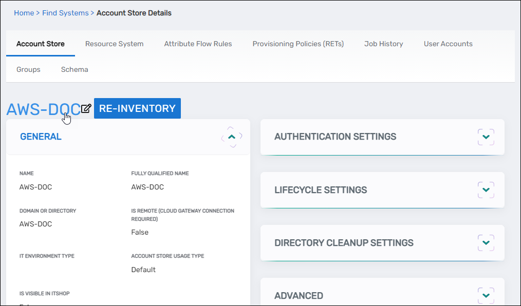 From the Account Stores tab of the Account Stores and Systems page, search for the account store you just created and click the Account Store link for it.
