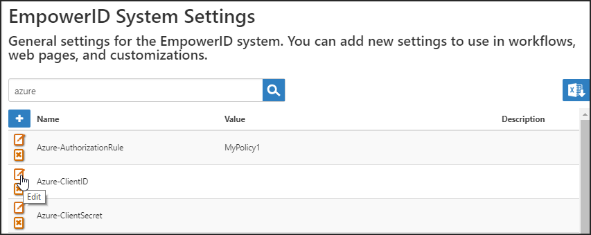 Search for "Azure," locate the Azure-ClientID setting and click the Edit button.
