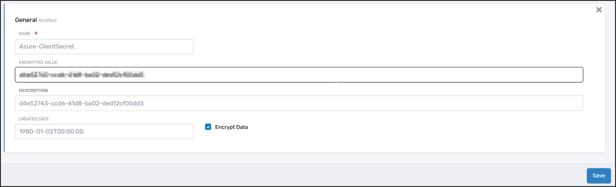 Encrypt Data - Select the checkbox if you want to cipher the value.