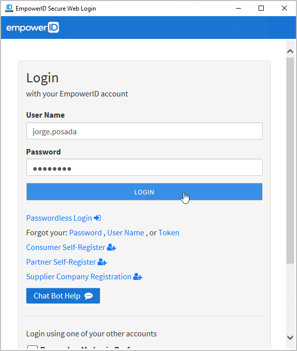Enter the EmpowerID username and password for the remote cloud gateway account you previously created and click Login.