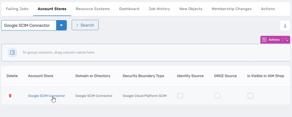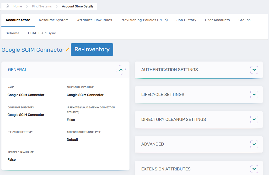 This directs you to the Account Store and Resource System page for the Google SCIM connector.