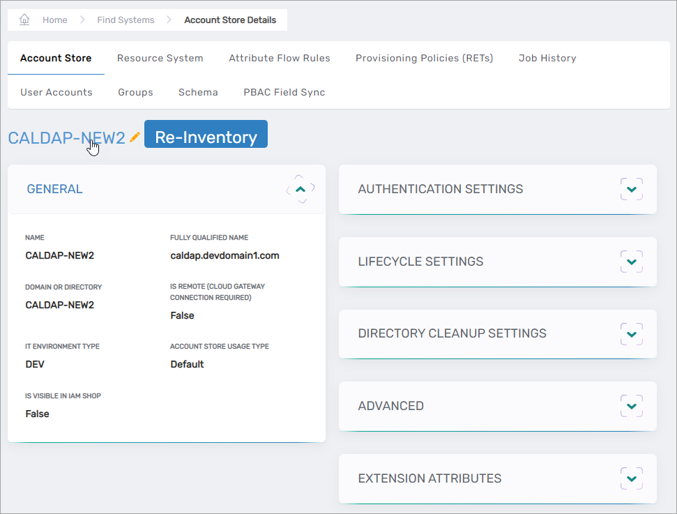 From the Resource Systems tab of the Account Stores and Systems page, search for the account store you just created and click the Display Name link.