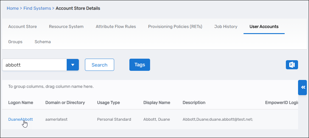 Search for the Local Windows account store with the user accounts you want to manage and click the Account Store link to navigate to the Account Store Details page for the account store.