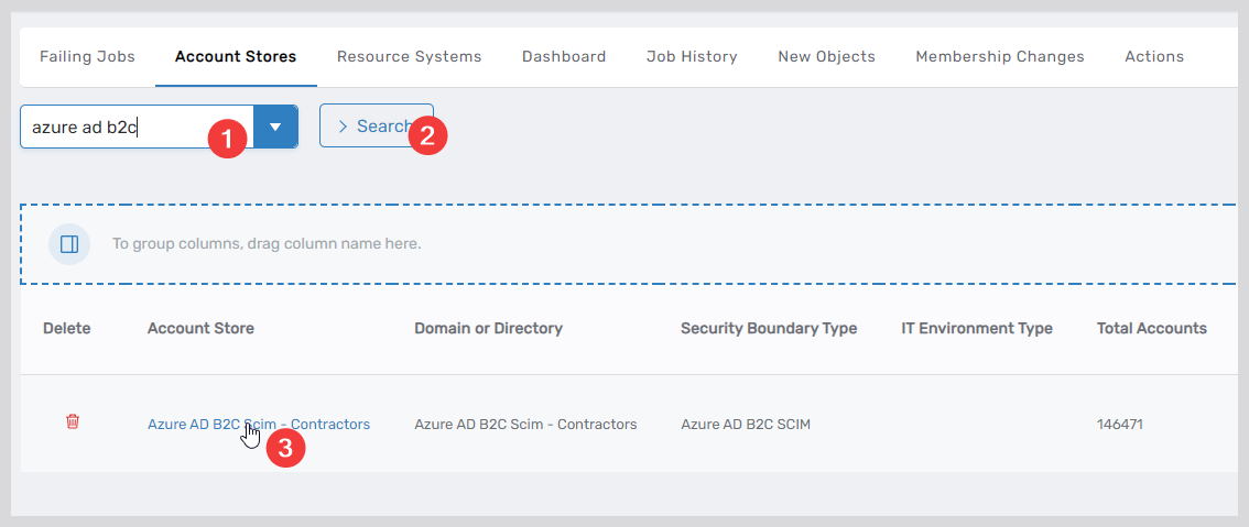 Search for the EntraID B2C SCIM account store you created and click the Account Store link for it.