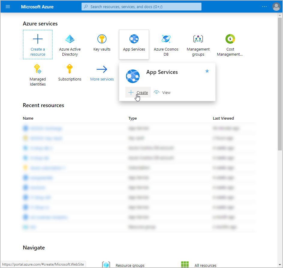 - Log in to your Azure portal as a user with the necessary permissions to create an App Service.