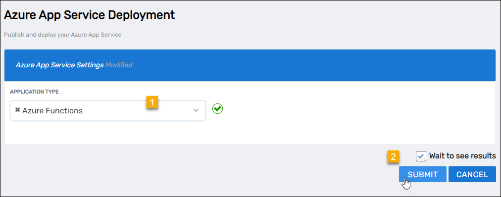 - For Application Type select Azure Functions and then click Submit.
