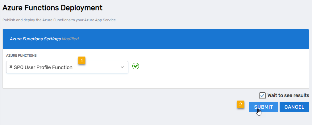- For Azure Functions, select SPO User Profile Function and click Submit.