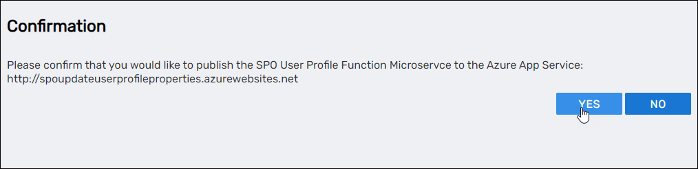 - Click Yes to confirm that you want to publish the function.