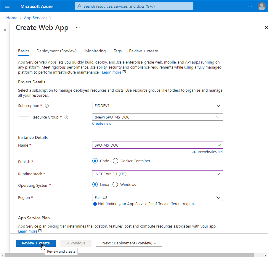 Create an App Service for the SharePoint Online Microservice