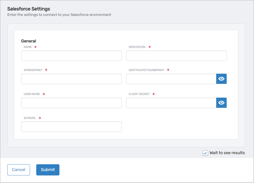 This opens the Salesforce Settings form, which is where you enter the information needed to connect EmpowerID to the system.