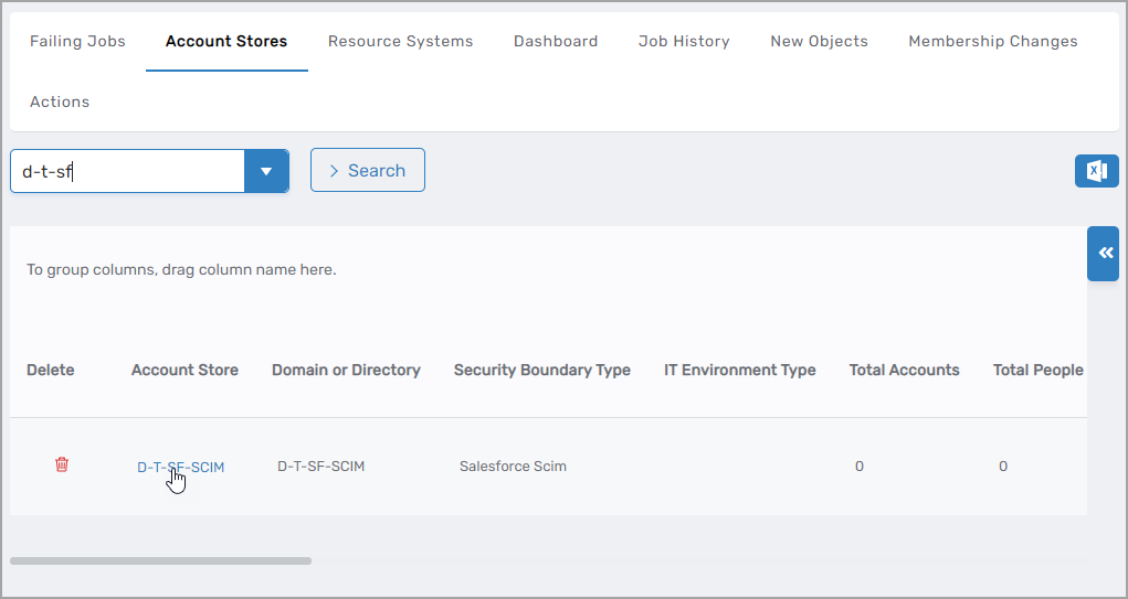 - Return to the Find Account Stores page and search for the Salesforce SCIM account store you just created.