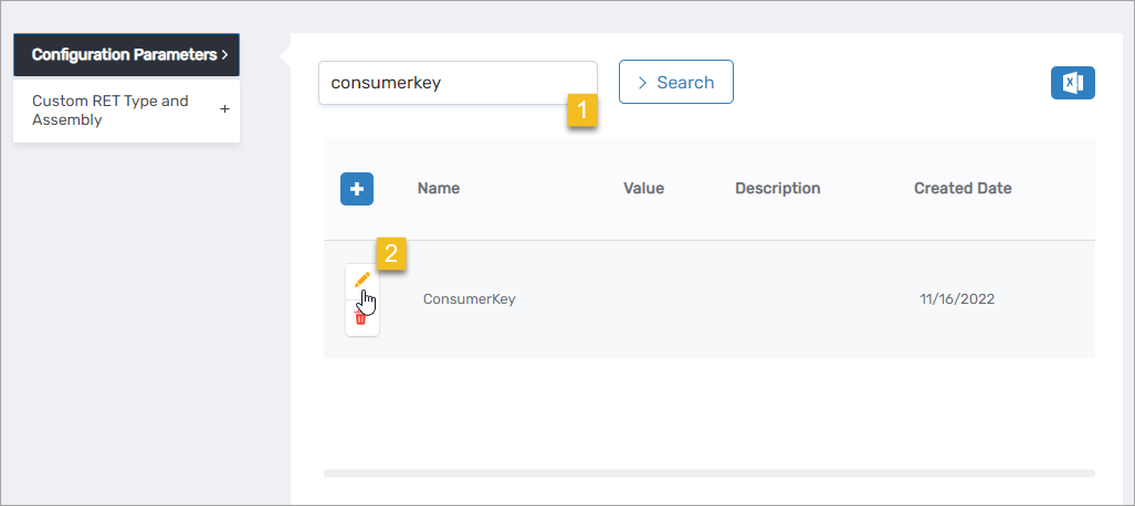 - Search for the ConsumerKey parameter and click the Edit button for it.