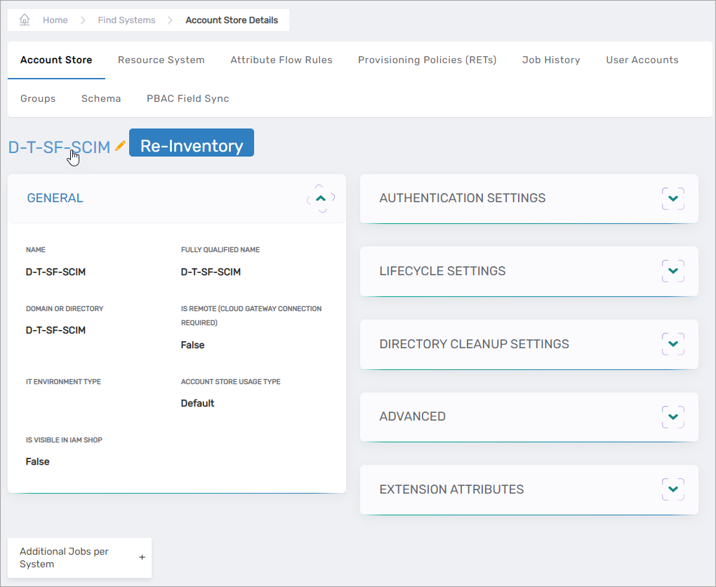 - Navigate to Account Stores and Systems and locate the newly created Linux account store.