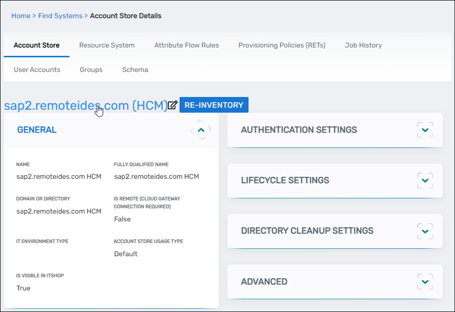 - Navigate to Account Stores and Systems and locate the newly created Linux account store.
