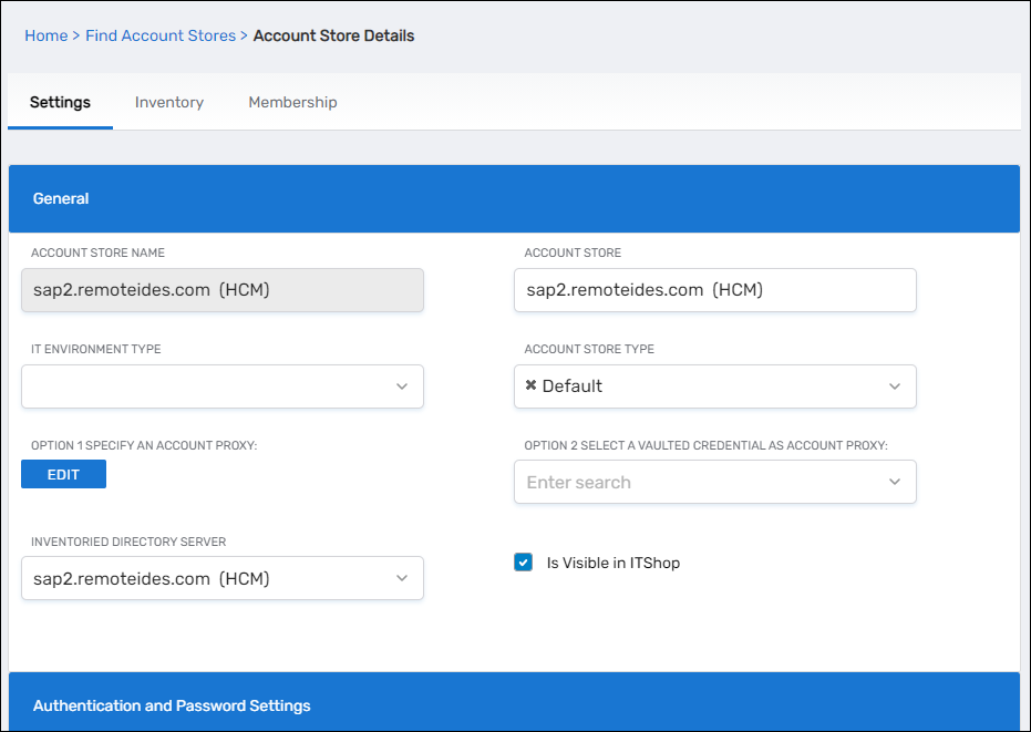 Inventoried Directory Server | Allows you to select a connected server as the directory server for the account store. |