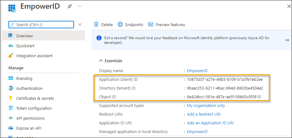 - Azure AppID – The ID of the application you registered in Azure AD for EmpowerID