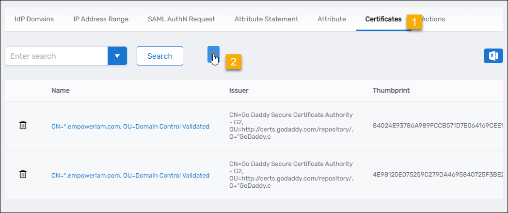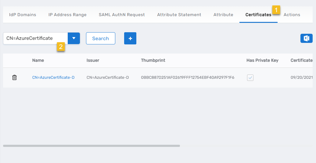 - On the SSO Components page, select the Certificates tab and search for the certificate you just created.
