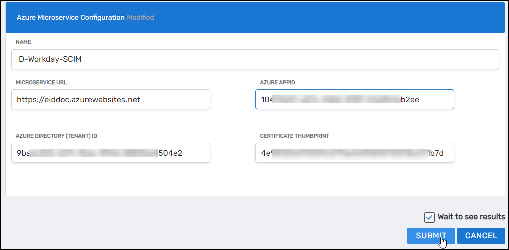 - Microservice URL – The URL to the app service hosting the Workday SCIM microservice