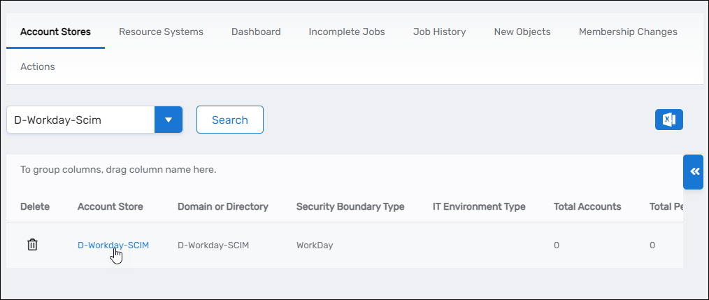 - Return to the Find Account Stores page and search for the Workday account store you just created.