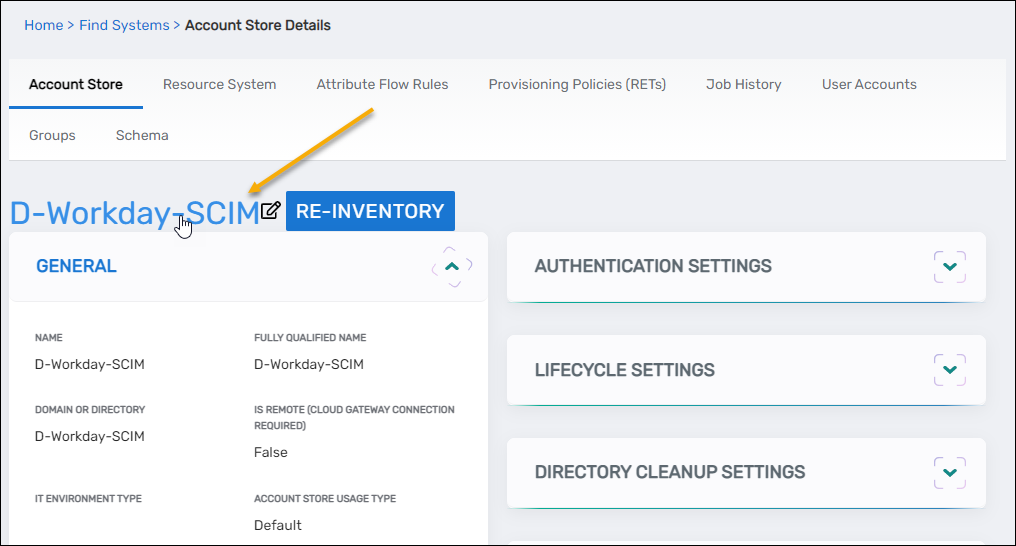 - Expand Admin > Applications and Directories on the navbar and select Account Stores and Systems.