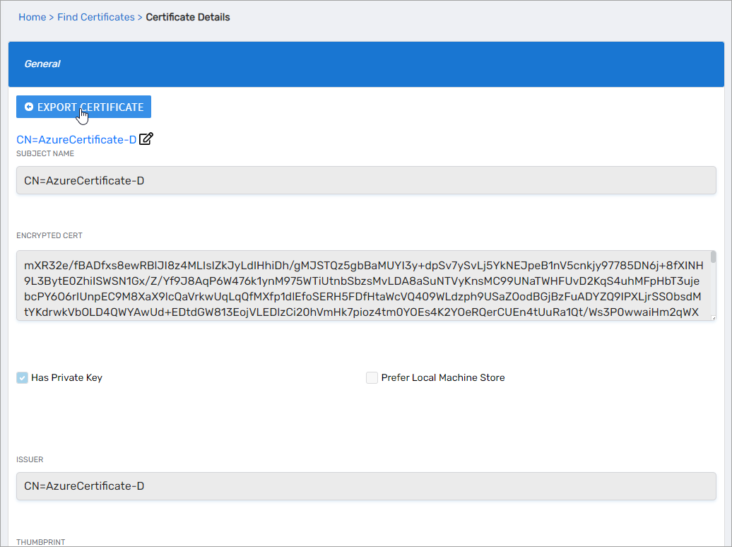 - From the Certificate Details page, return to the SSO Components page by clicking the Find Certificates breadcrumb.
