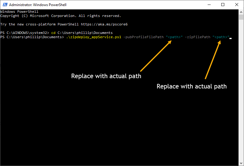 $zipdeployUrl = "https://$($zipPubProfile.publishUrl)/api/zipdeploy"