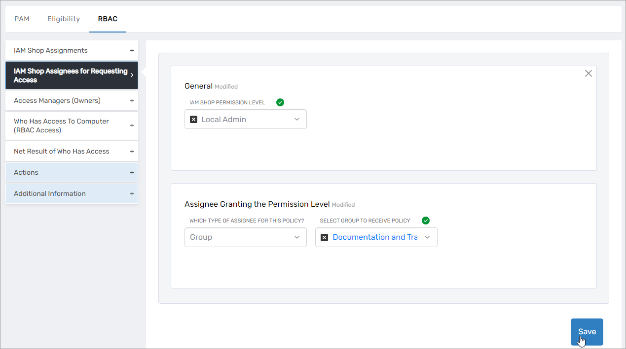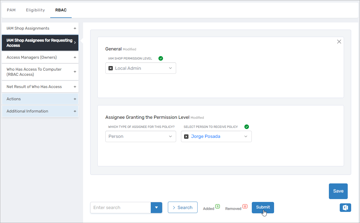 - From the View One page for the computer, click the RBAC subtab and expand IAM Shop Assignees for Requesting Access.