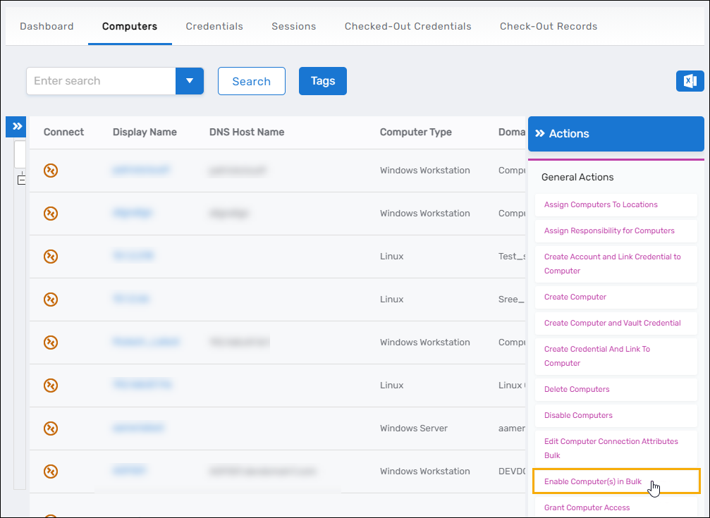- Search for the disabled computer(s) you want to enable and check the box for each computer.