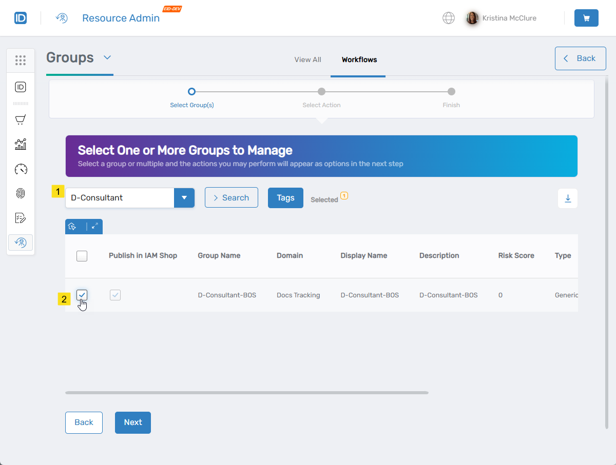- Navigate to Group Workflows: In Resource Admin, select Groups from the Resource Type menu and then select the Workflows tab.