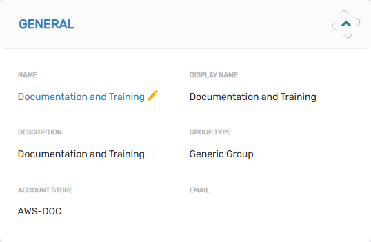 General Card | Displays general information about the group, such as the group type and the account store to which the group belongs.![]()