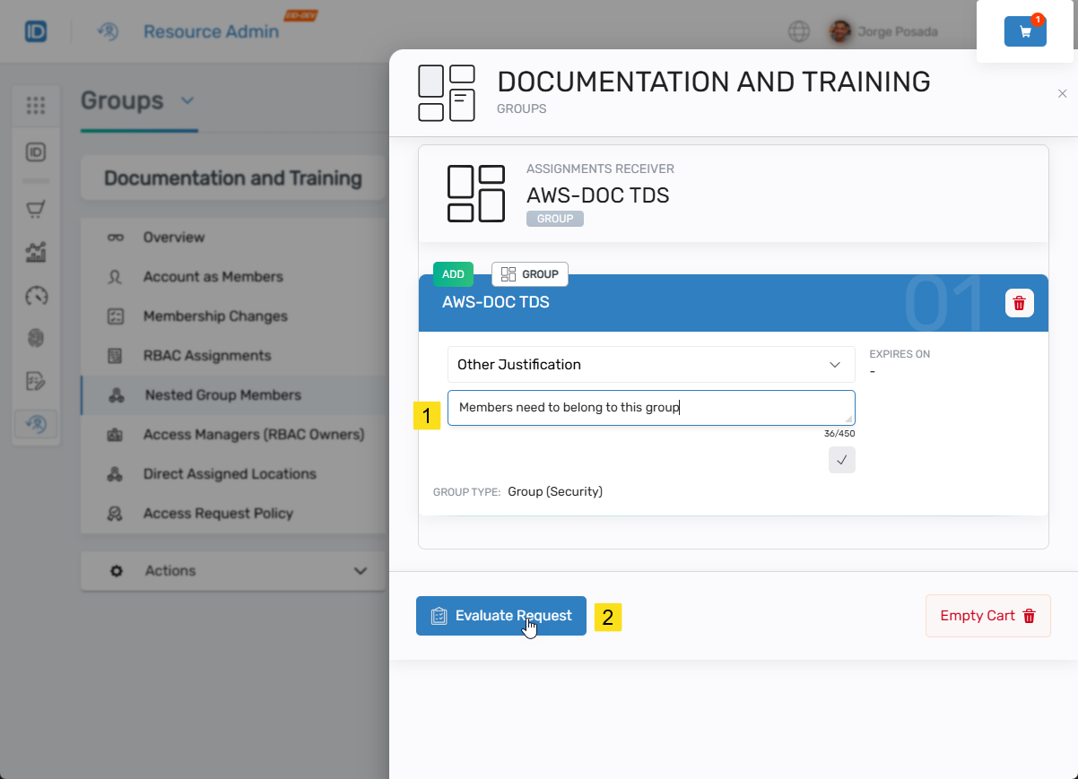 - Enter a comment in the comment field and then click Evaluate Request.