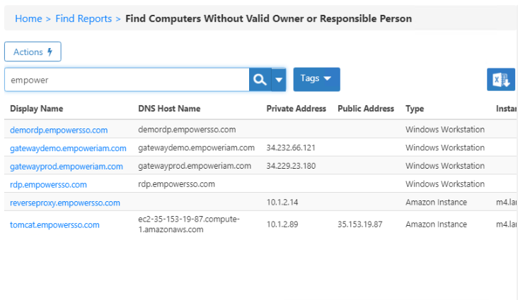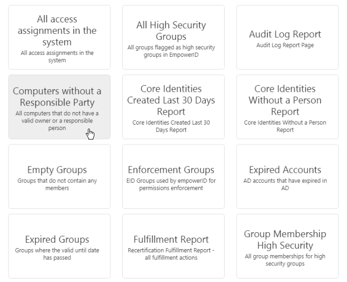 - A grid populates with information about all Computers in the EmpowerID system that do not have a responsible party.