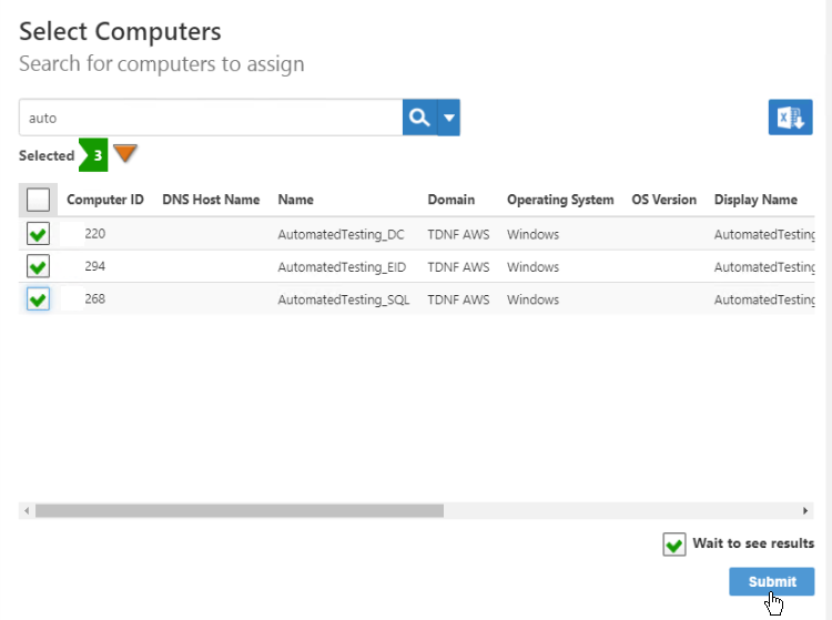 - On the Select Computers page that appears, select computers to assign to a responsible party and click Submit.