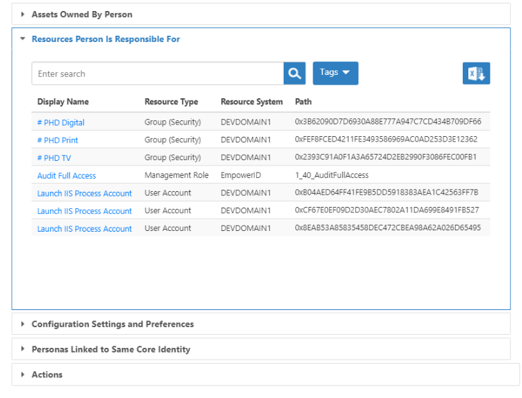 Here you can see all of the resources for which the person is responsible. Click the Display Name link for any resource to navigate to that page where you can reassign responsibility for the resource if necessary.
