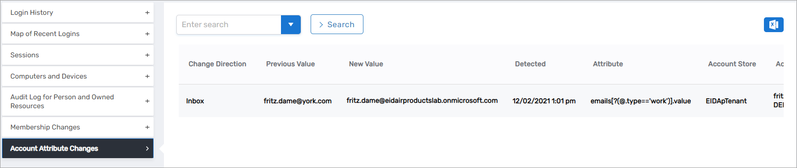 Account Attribute Changes Accordion | Displays information about attribute changes made to the person![]() |