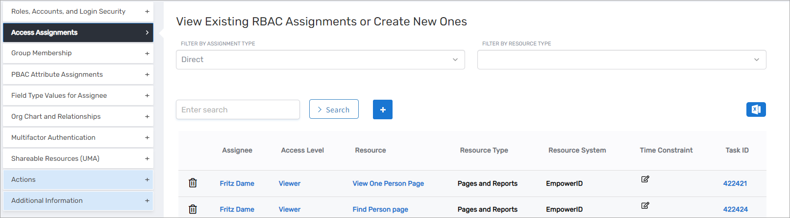 Access Assignments Accordion | Displays current RBAC assignments for the person as well as provides access to create new ones![]() |