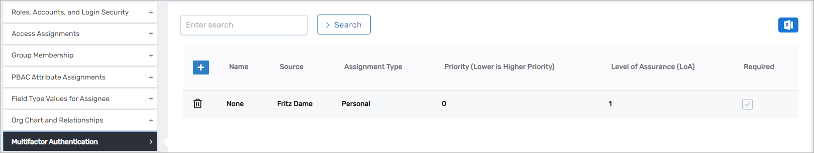 Multifactor Authentication Accordion | Displays current MFA types assigned to the person and provides access to update those types as needed![]() |
