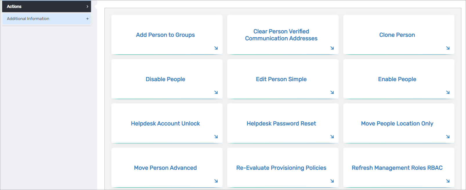 Actions Accordion | Provides access to various workflows for managing the person, such as Reset Password, Terminate Person, and Unenroll Person![]() |