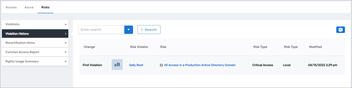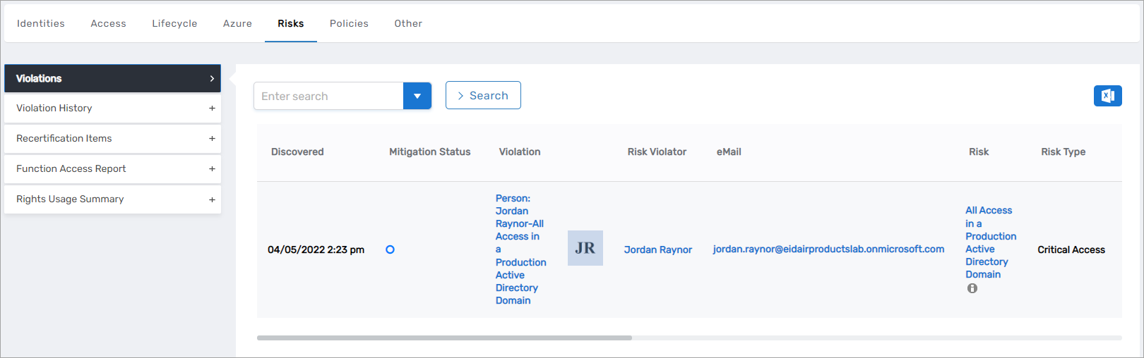 Risks Tab | Displays risk-related information for the person, such as any violations to current Risk policies![]() |