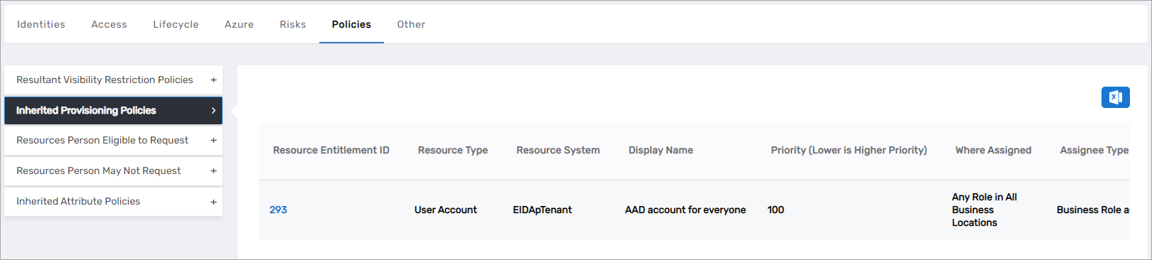 Policies Tab | Displays policy-related information for the person, such as any inherited Provisioning policies![]() |