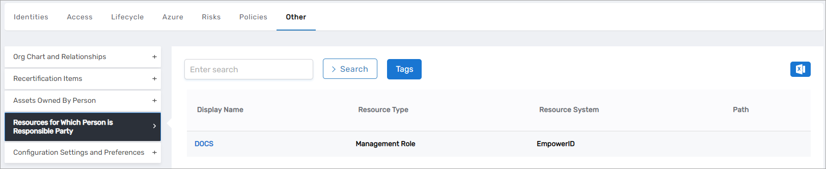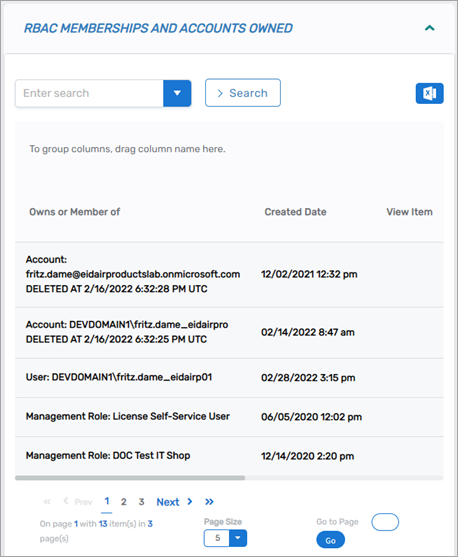 RBAC Memberships and Accounts Owned Card | Displays role memberships granted via the RBAC engine and user account owned by the person![]() |