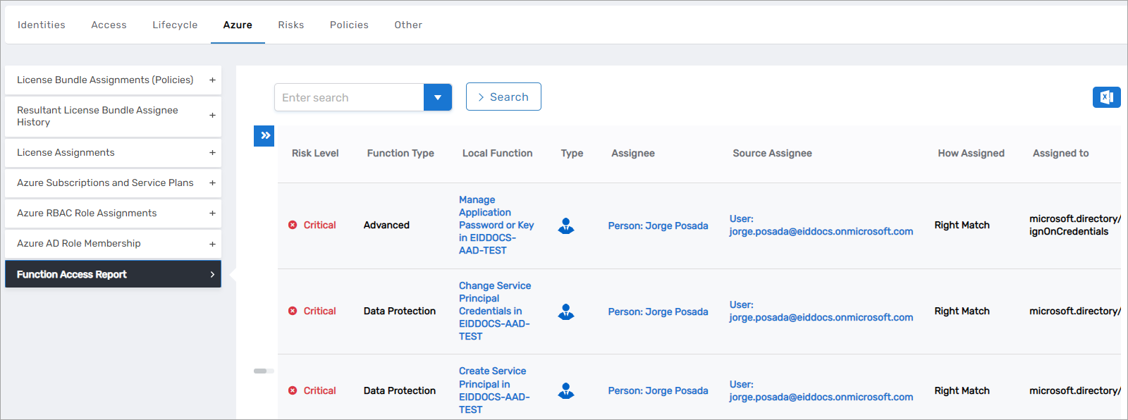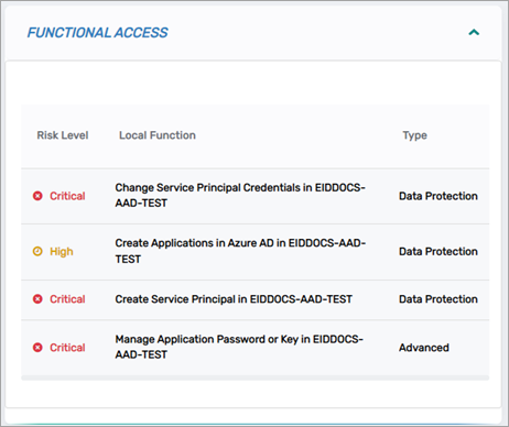 Functional Access Card | Displays any local functions the person has, and the risk level associated with those functions![]() |
