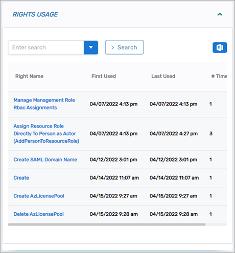 Rights Usage Card | Displays any rights in the system used by the person![]() |