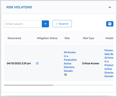 Risk Violations Card | Displays violations of organizational risk policies for the person, if any![]() |