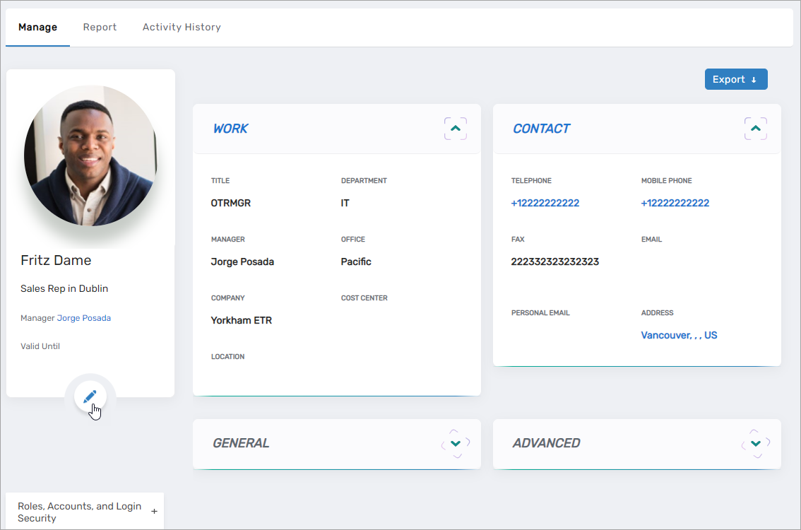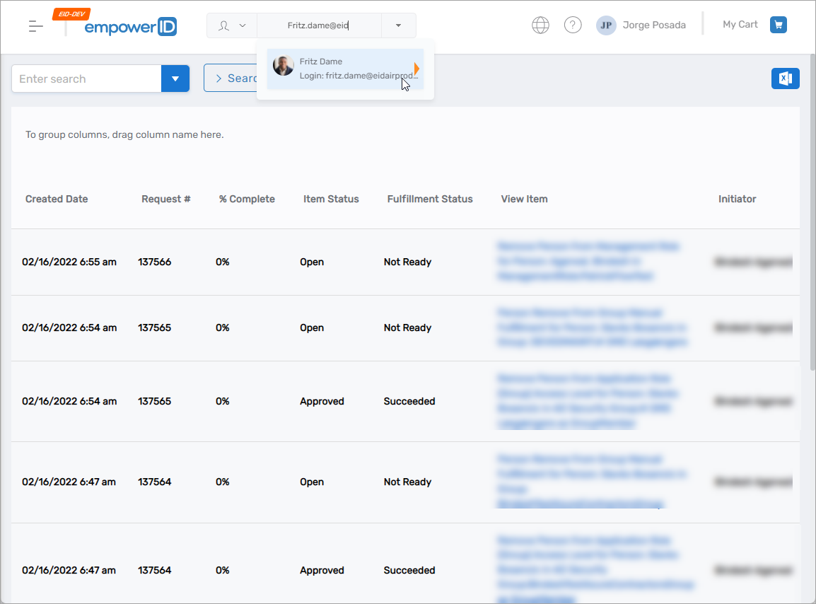 - In the Global Search field available on any page of the EmpowerID Web interface, enter the name of the person for whom you want to set the home page and click the card for that person.