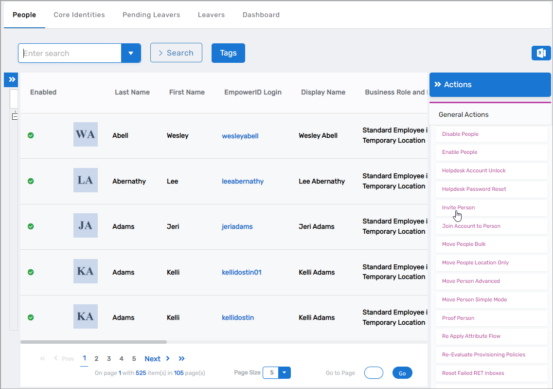 EmpowerID provides a number of actions for creating people, with different options available for each. In the case of inviting people to join your organization, EmpowerID creates an inactive person and emails the prospective person a link to complete registration. If the person does not complete registration within the specified number of days, EmpowerID deletes the inactive person account created for that user.